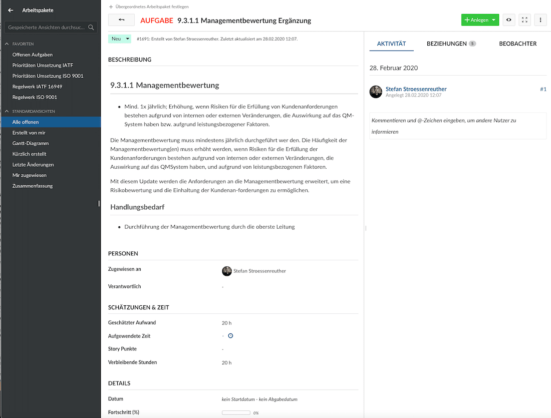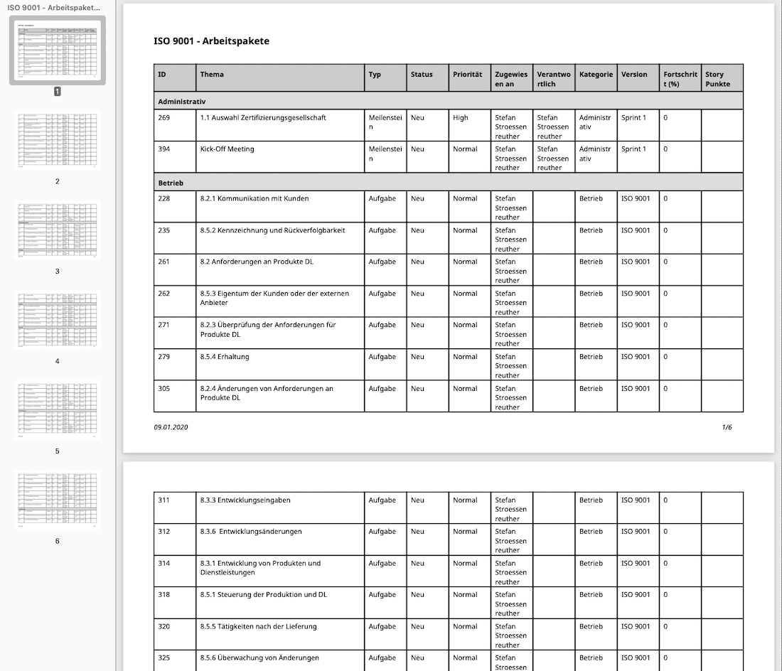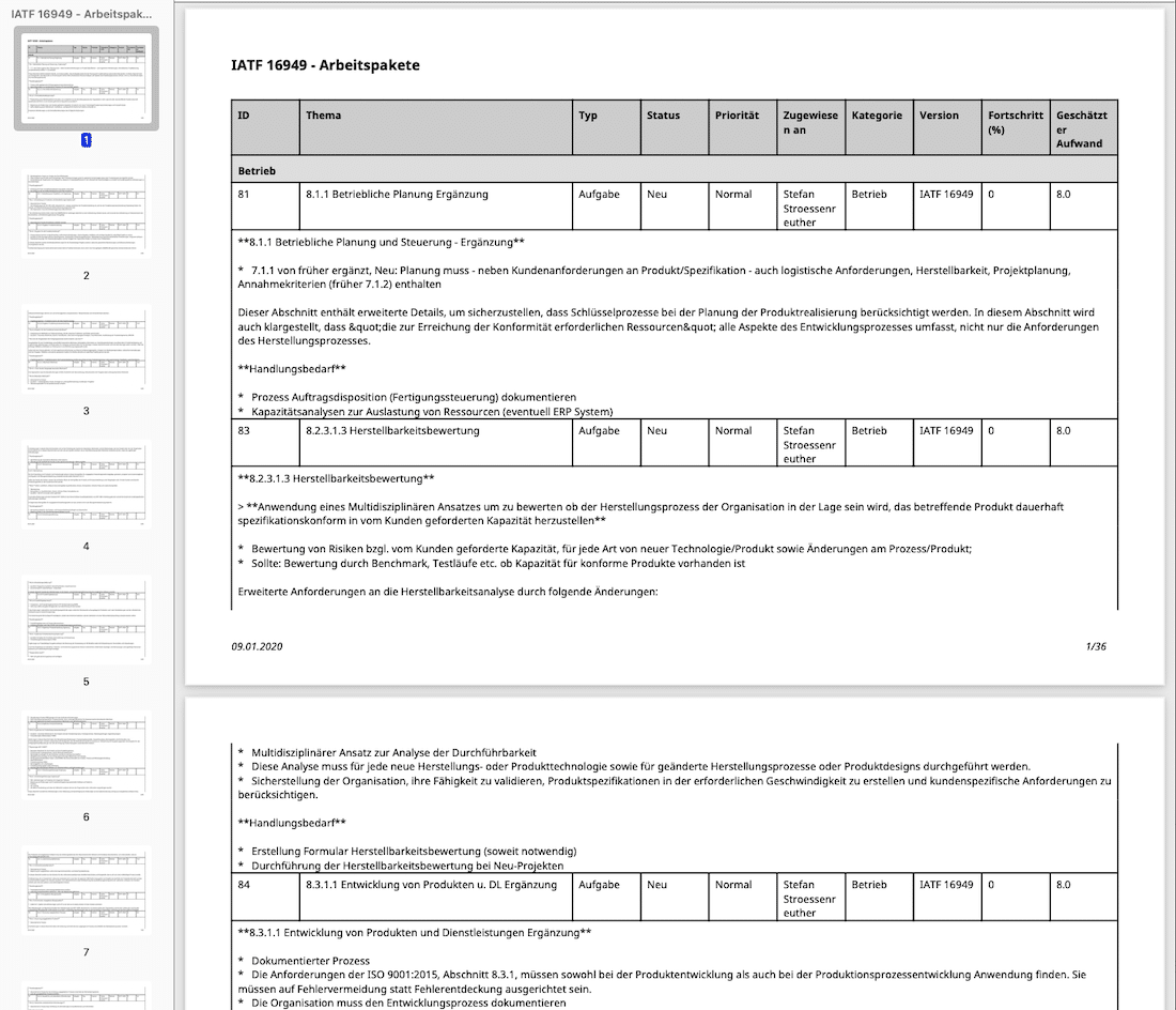 Arbeitspakete ISO 9001 und IATF 16949