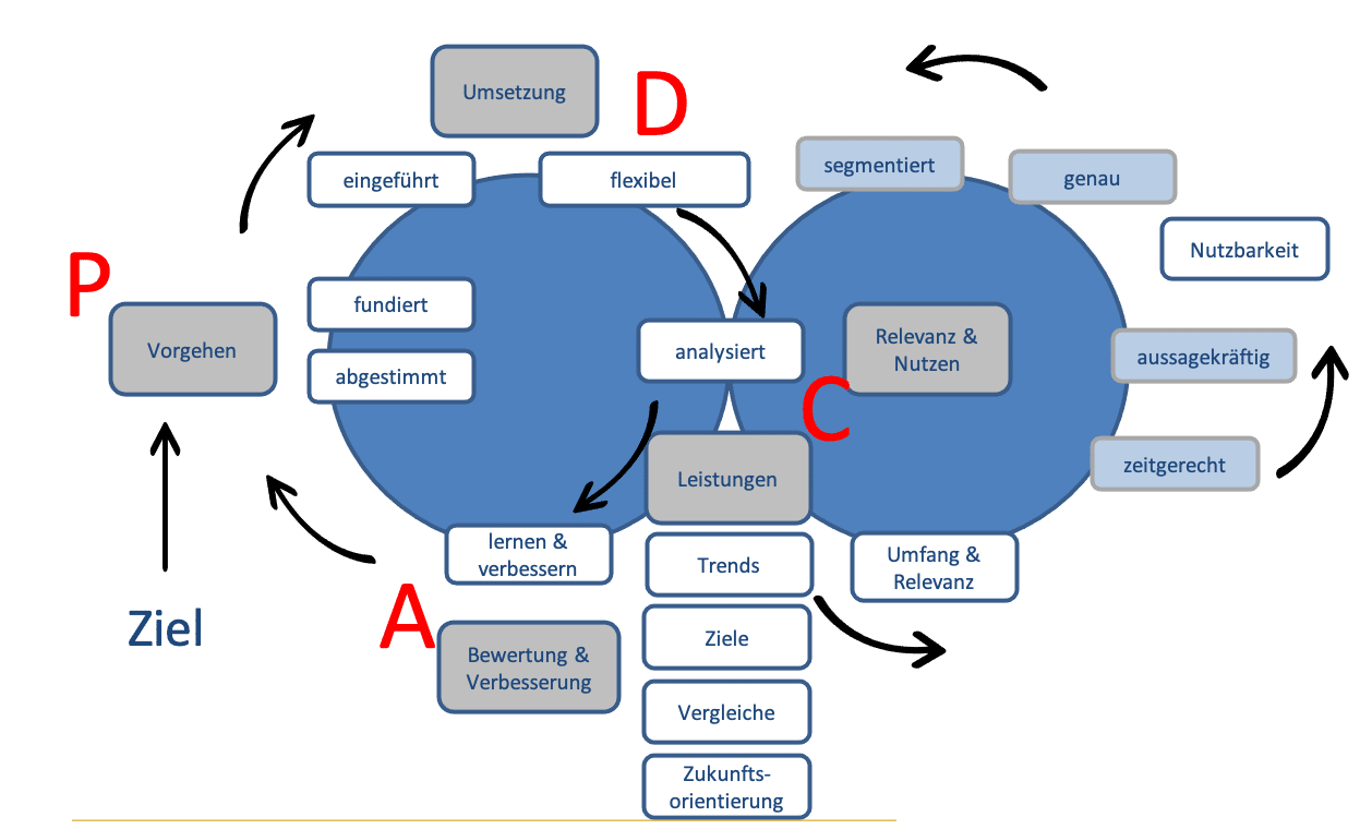 Erkenntnisse aus Trendanalysen, Messungen, Lernen und Benchmarking werden genutzt, um Kreativität anzuregen und in angemessenen Zeitabschnitten innovative Lösungen für die Verbesserung zu entwickeln