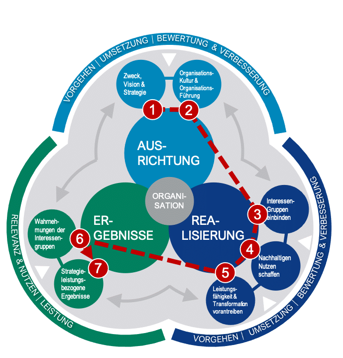 einer Organisation und wie sie dadurch für die von ihr als wichtig erkannten Interessengruppen nachhaltigen Nutzen schafft und herausragende Ergebnisse erzielt.