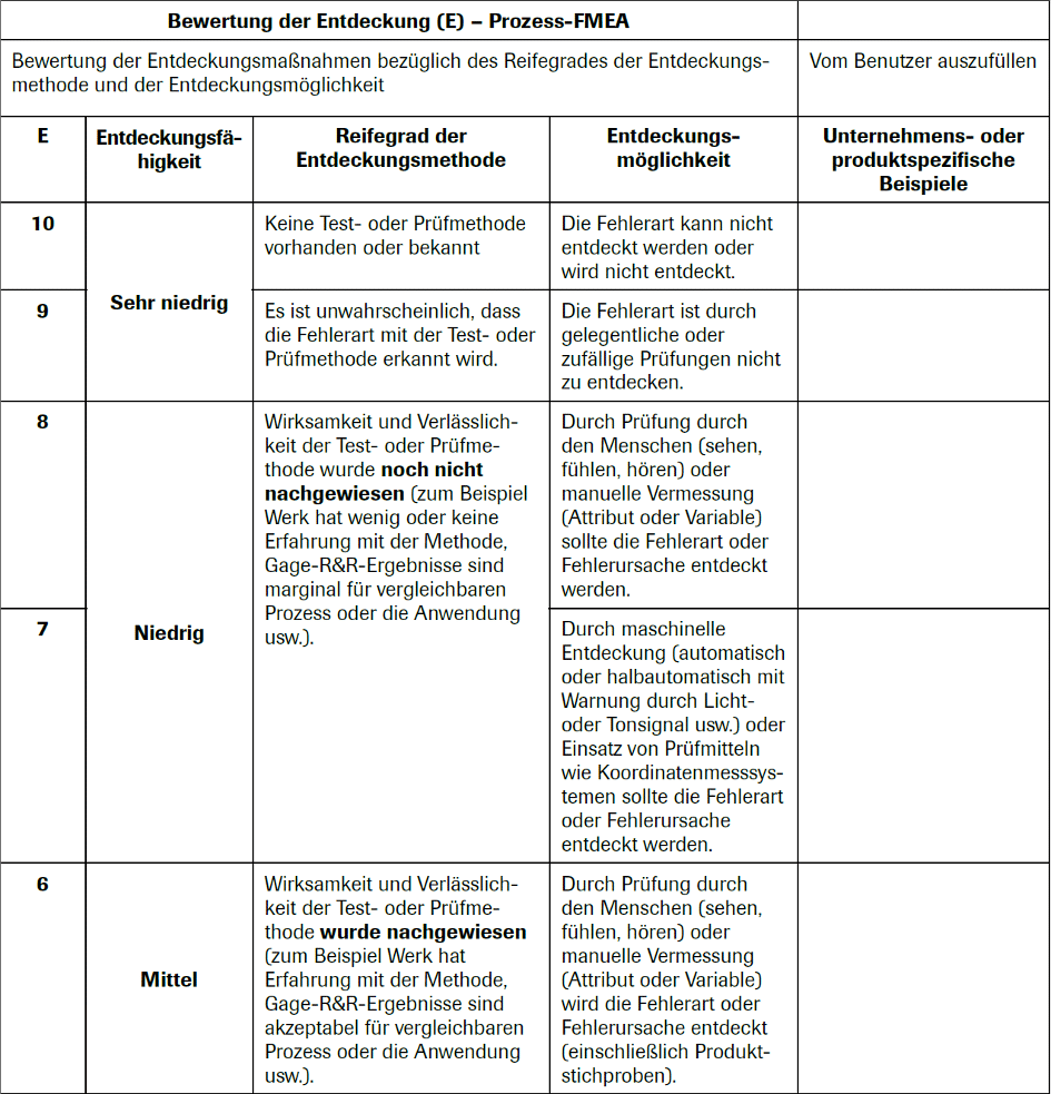 Abbildungen: Schritt: Risikoanalyse – Bewertung der Entdeckung (E) – Prozess-FMEA